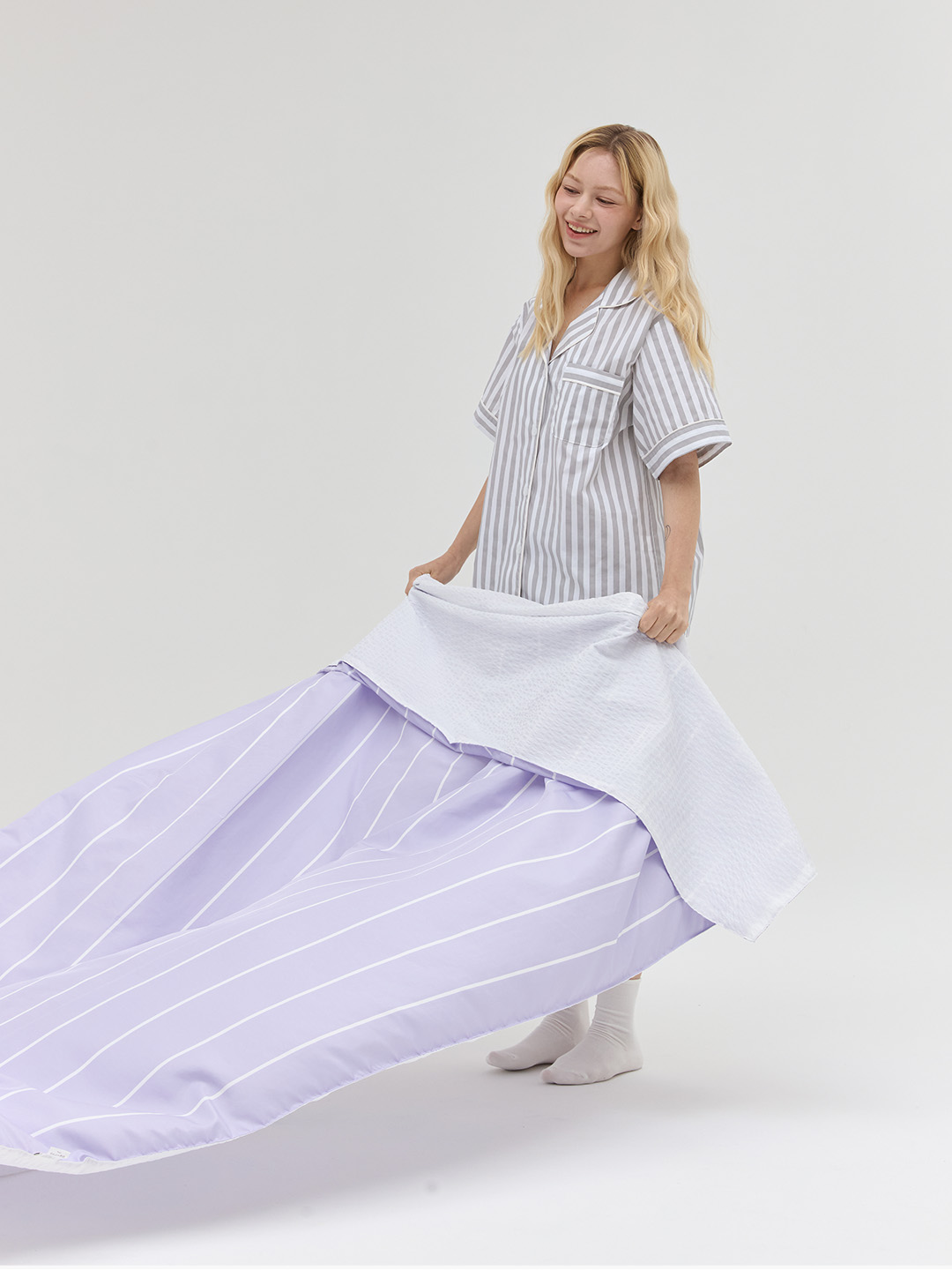 베이직한 무지 원단에 앞, 뒤 컬러가 다른 리버시블 디자인으로 때에 따라 다른 무드를 연출할 수 있는 실용적인 솔리드 요커버 아이템입니다. 베개커버와 세트로 제작되어 함께 사용하셔도 좋습니다.