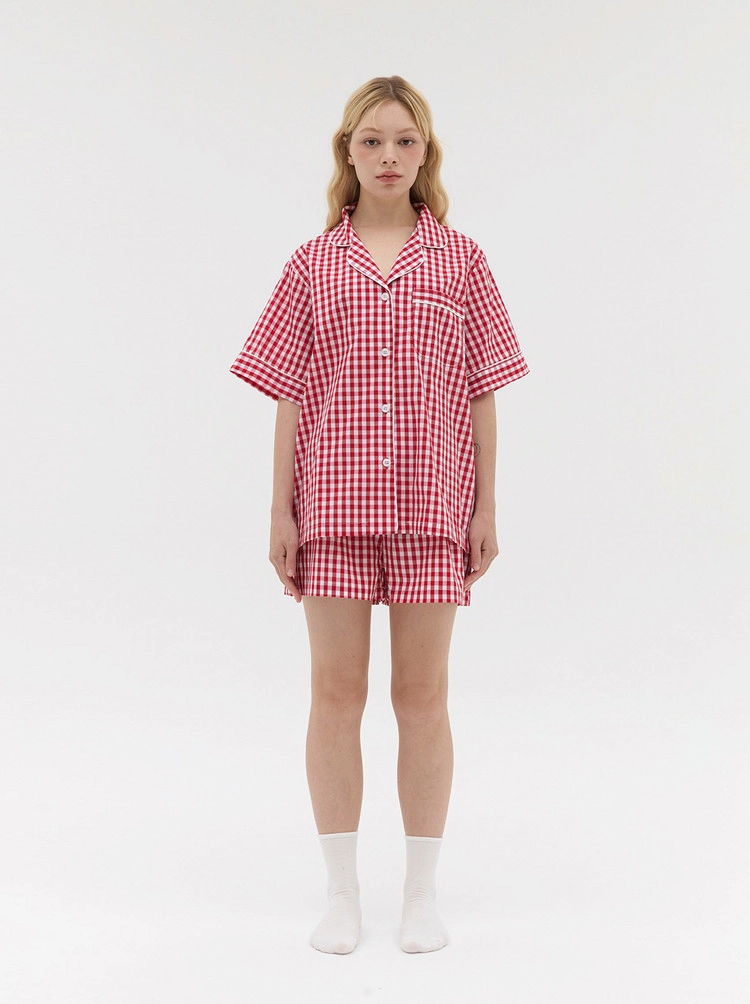 레드 깅엄체크 순면 반팔 파자마 세트